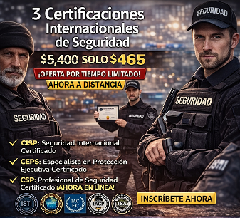Esta oferta especial incluye, además y sin costo adicional, los cursos en línea de Oficial de Seguridad Certificado y de Especialista Certificado en Protección Ejecutiva.